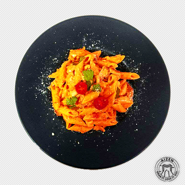 پاستا پنه، اسلایس فیله مرغ، سس قارچ و خامه، پنیر پارمسان، سس سیر، ادوی...