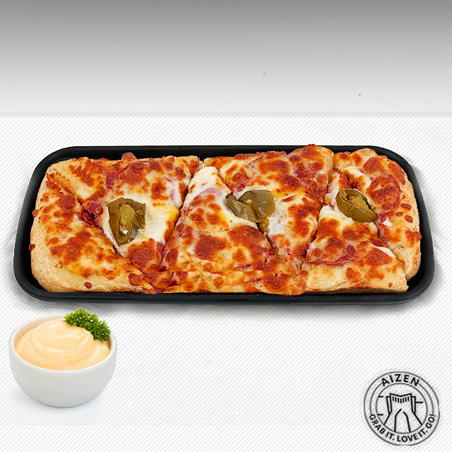 خمیر رومانا استایل 21*13 سانتی، سس مارینارا، پپرونی، هالوپینو، پنیر پیتزا