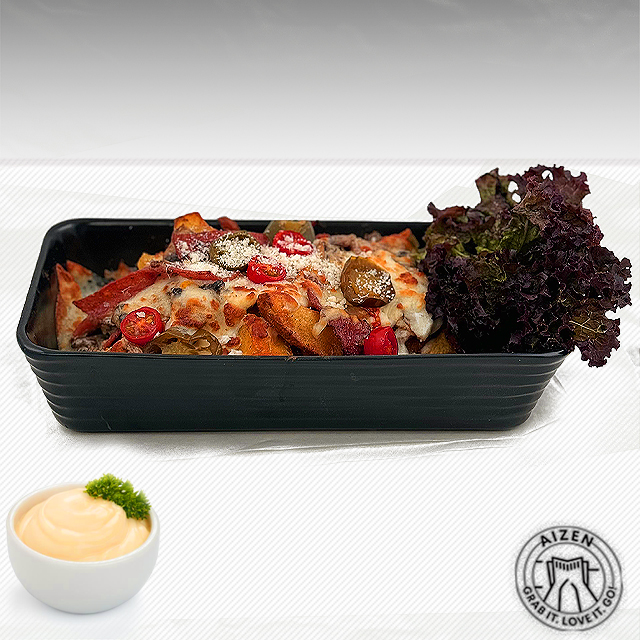 فرنچ فرایز، ادویه مخصوص سیب زمینی، ژامبون بیکن، پنیر پیتزا، سس دیپ چدار
